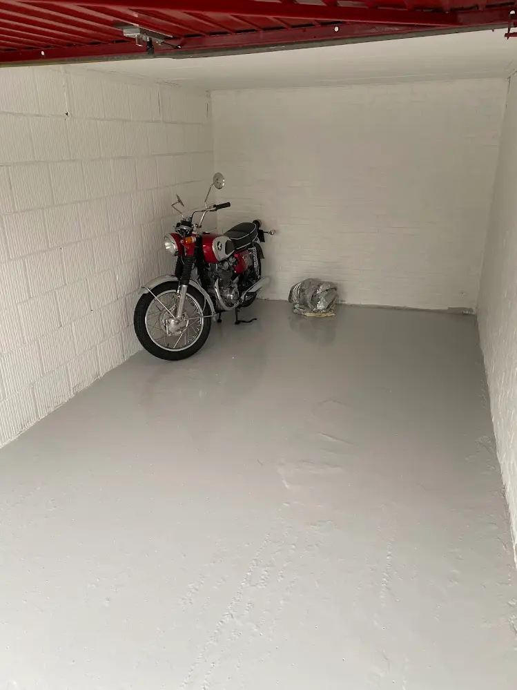 We gebruiken een hoogwaardige 2-componenten epoxy vloercoating. Deze is extreem slijtvast, vloeistofdicht, stofvrij en eenvoudig te reinigen, wat de levensduur en uitstraling van uw garagebox aanzienlijk verbetert.